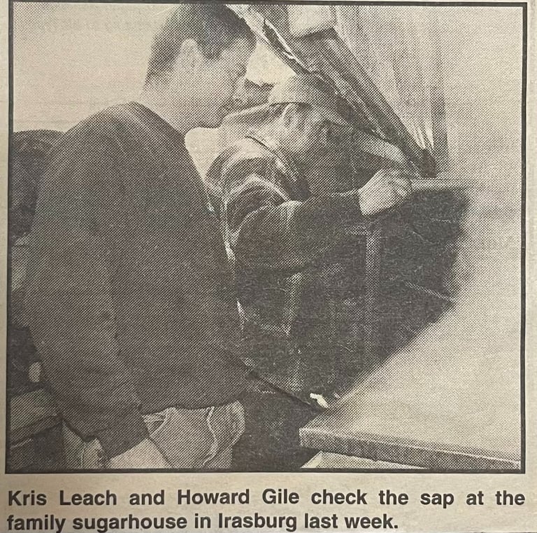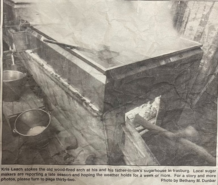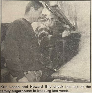 The Leach Maple Sugarhouse was established in Irasburg Vermont in 1973 by Ernest Gile. Ownership was then transferred to Howard and Geneva Gile until 2006. Third-generation maple sugar makers, Kris and Karen Leach took over ownership and operations with the help of Jamie Griggs (friend) along with their sons Braydon and Landyn (fourth generation). In 2008, the number of taps was doubled, bringing the total number in the sugar bush to 4,000. With the sugar bush doubling in size, a 1-post reverse osmosis (RO) system and a new 4x12 wood-burning evaporator were put into place to speed up production.